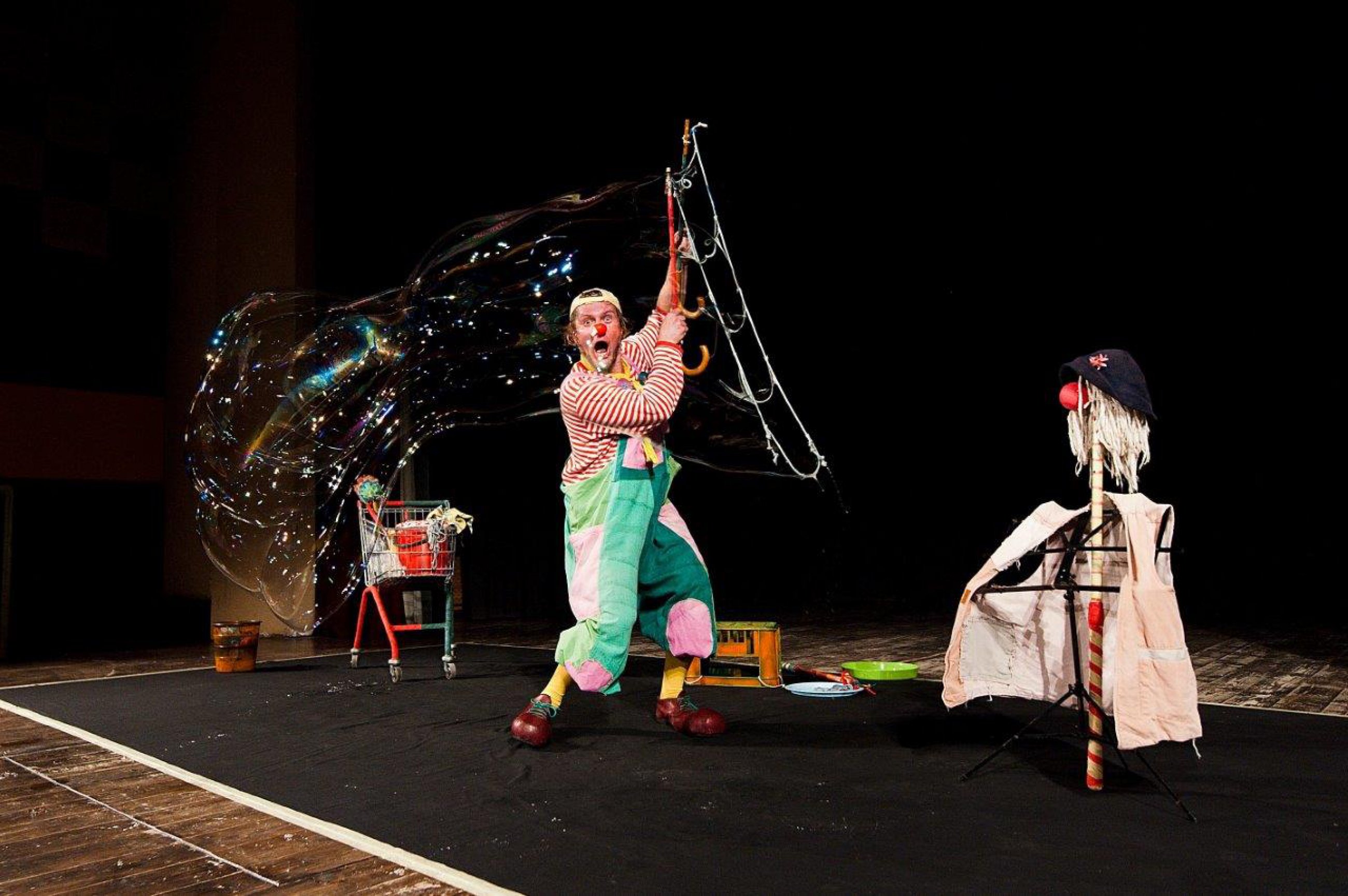 Príbeh klauna, ktorý pri upratovaní zisťuje, že mop má svoje čaro a dajú sa s ním robiť magické kolosálne bubliny. Príďte si s ním zabublinovať.