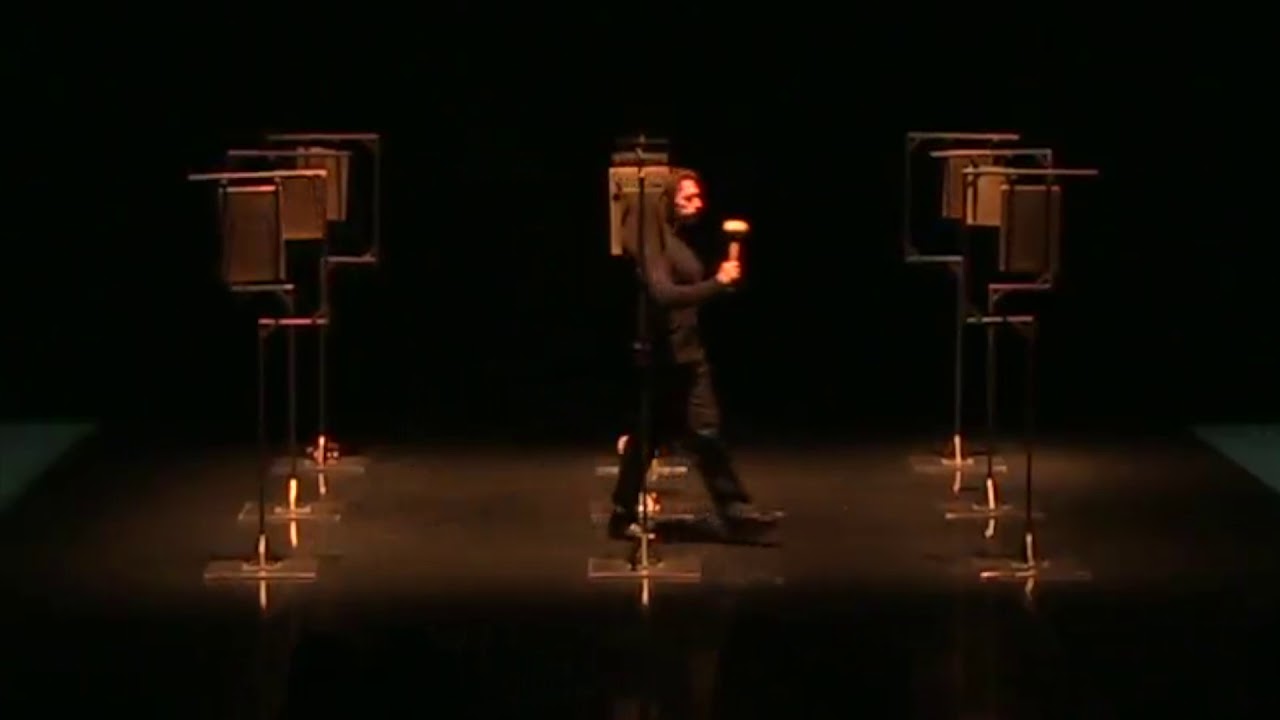Priestorová skladba pre sólový bicí nástroj, v ktorej interpret prechádza medzi deviatimi zavesenými zvonmi a udiera do nich presne stanovenými sekvenciami. To, čo sa na prvý pohľad javí ako dokonale čistý, takmer strojový proces s predvídateľnými výsledkami, je neustále narušované ľudskosťou interpreta: nerovnomernosťou každého kroku, nevyhnutným dychom či zvukom tela počas „pauzy“.