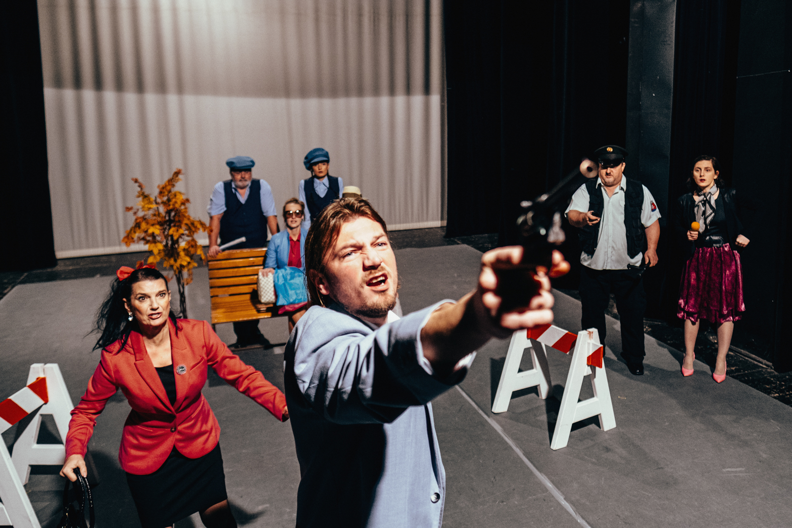 Autor literárnej predlohy: Leonid Andrejev • Réžia: Michal Spišák • Asistencia réžie: Jozef Pantlikáš • Hrajú: Jozef Pantlikáš (Policajt), Vasiľ Rusiňák (Úradník, Kňaz), Jozef Tkáč (Muž, Šéf), Jaroslava Sisáková (Pani), Zdenka Kvasková (Dievča, Redaktorka TV), Ľubomír Mindoš (Tatko), Martin Oravec (Saša, Kamereman), Iveta Fejková Fedorová, Daniela Libezňuk (Maša), Vladimír Roháč (Opitý, Anarchista), Vladimíra Štefániková (Nešťastník), Zuzana Kovalčíková (Bojová dáma) • Dramaturgia: Terézia Mindošová • Scénografia: Jaroslav Daubrava a.h. • Kostýmy: Miroslav Daubrava a.h. • Hudba: Slavomír Solovic a.h. • Zvuk: Milada Tuptová • Svetlá: Richard Tanislo, Matej Polák • Stavba scény: Štefan Hanuščin, Jozef Novák, Tomáš Liška • Rekvizity: Jozef Novák • Garderóba: Silvia Novotná • Fotografia: Branislav Štefánik a.h.